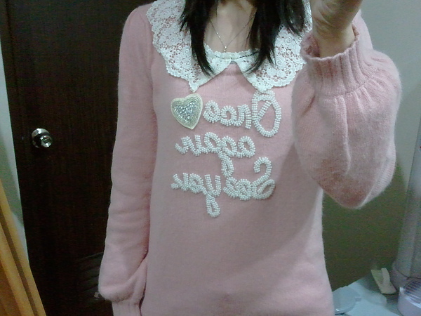 領口太低的毛衣,就來搭配BYEBYE背心吧,剛好跟下方的珍珠字母很配呢!