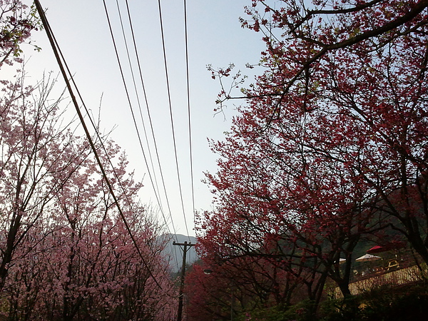 左邊開的是粉紅櫻花,右邊則是桃紅櫻花