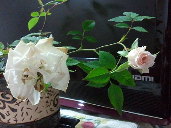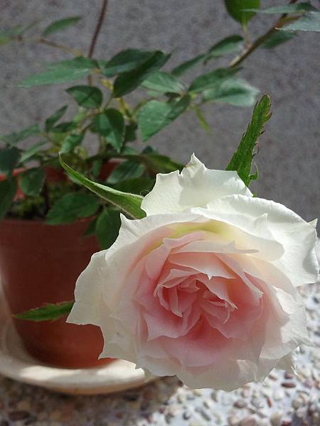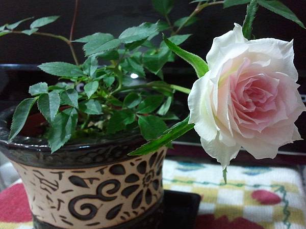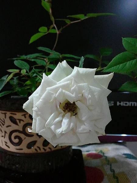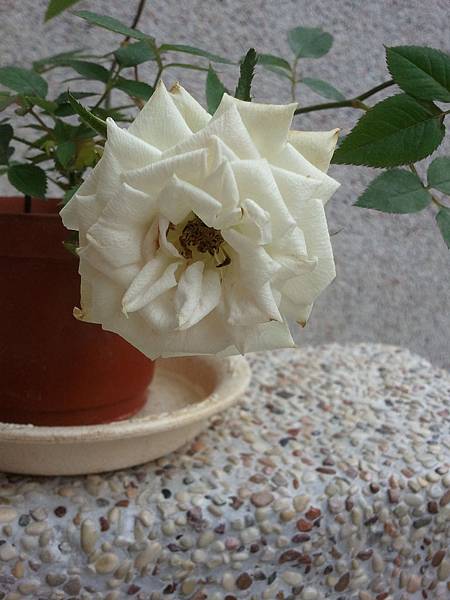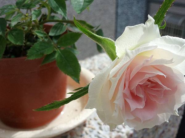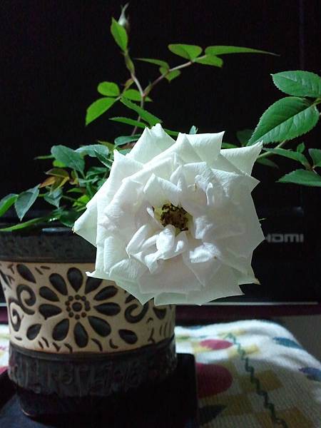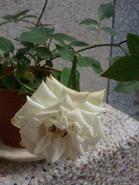 這盆白玫瑰則是不知被誰冷落在一旁,卻被我瞧見,