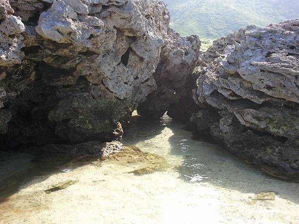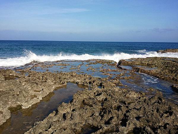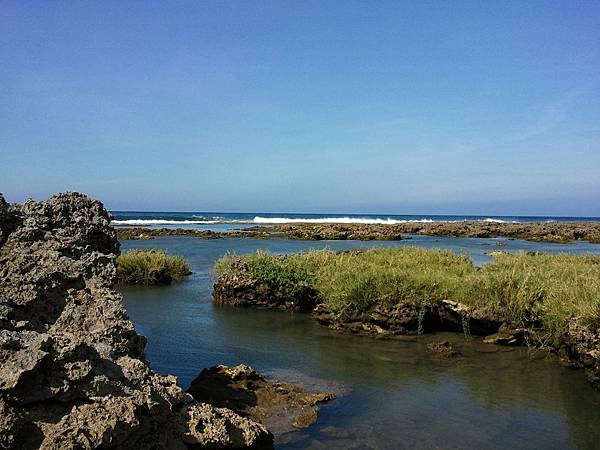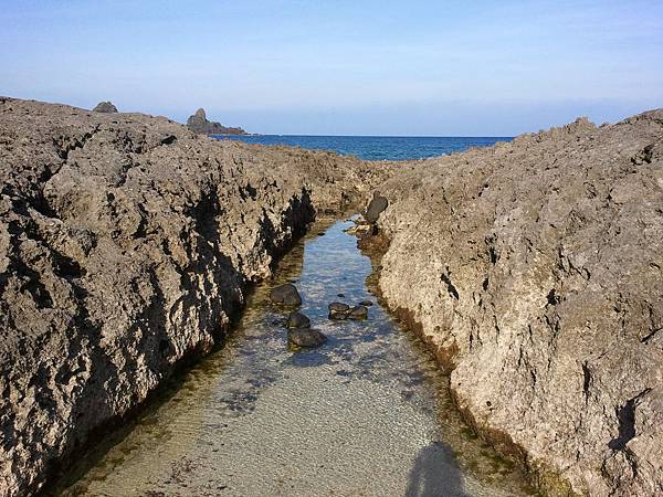 而當漲潮之時,海水就被困在岩石的凹槽,形成一個靜態的水池。