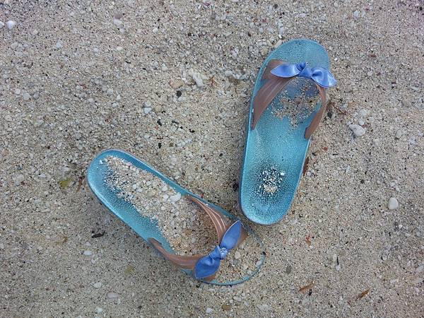 海水非常清澈,底下佈滿了貝殼