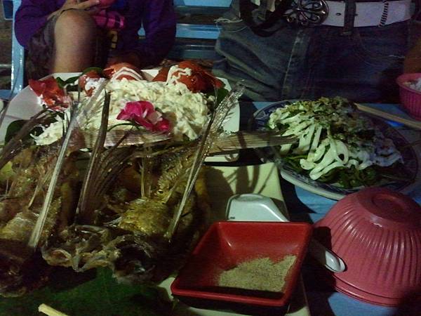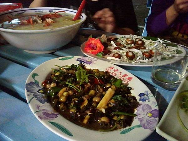 菜色很豐富,有小龍蝦、飛魚、情人的眼淚、炒螺、情人的眼淚、龍鬚菜等,