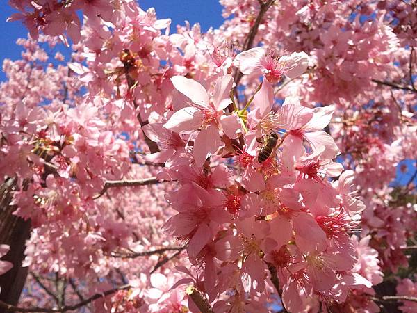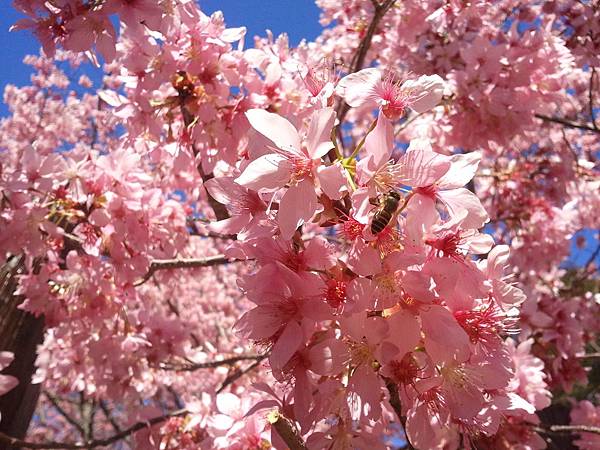 蜂兒採櫻花蜜,好想變成那隻蜂,徜徉花海。