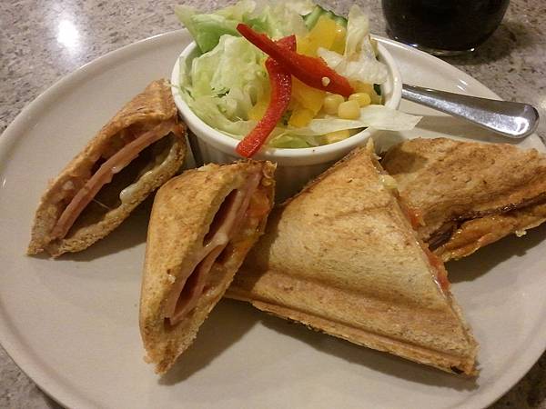 熱三明治套餐:飲料+熱三明治+蛋糕NT$160,加50可換其他飲品,