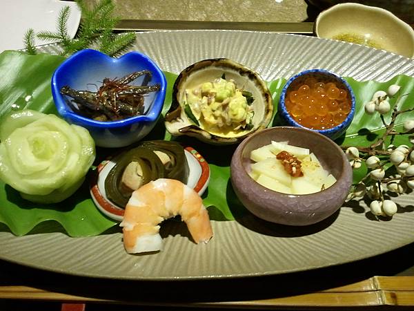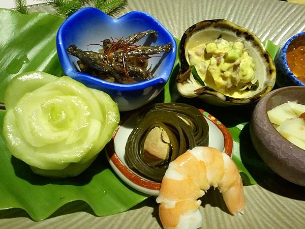 這個擺盤看起來就像是在荷葉上用餐,提供的菜色也以海味為主,讓人一開始就充滿了期待。
