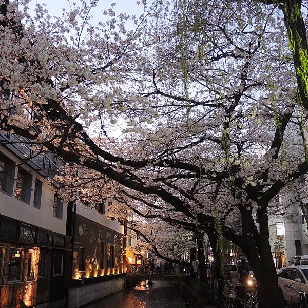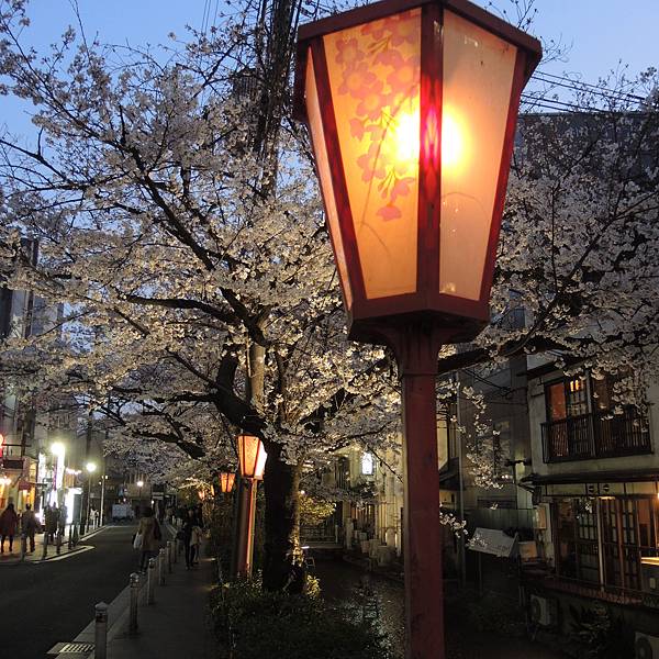 這是前往吃和牛的不知名小路@@櫻花配上路燈好美好有氣氛啊!