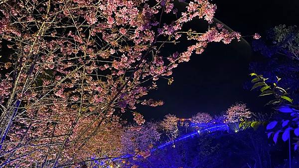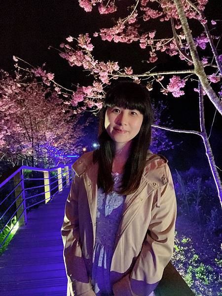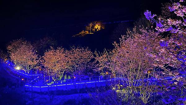 黃光打在櫻花上,更顯得櫻花的嬌嫩與浪漫,