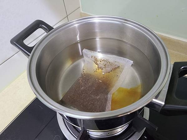 1.將1500CC的水煮開(冒泡即可關火),等待10分鐘後放入一包東爵紅茶包