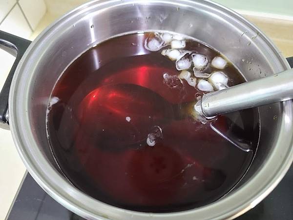 4.放入70公克的砂糖攪拌至溶解(約等於微糖)
